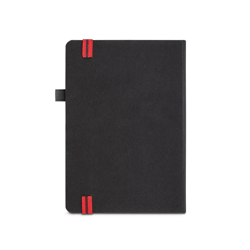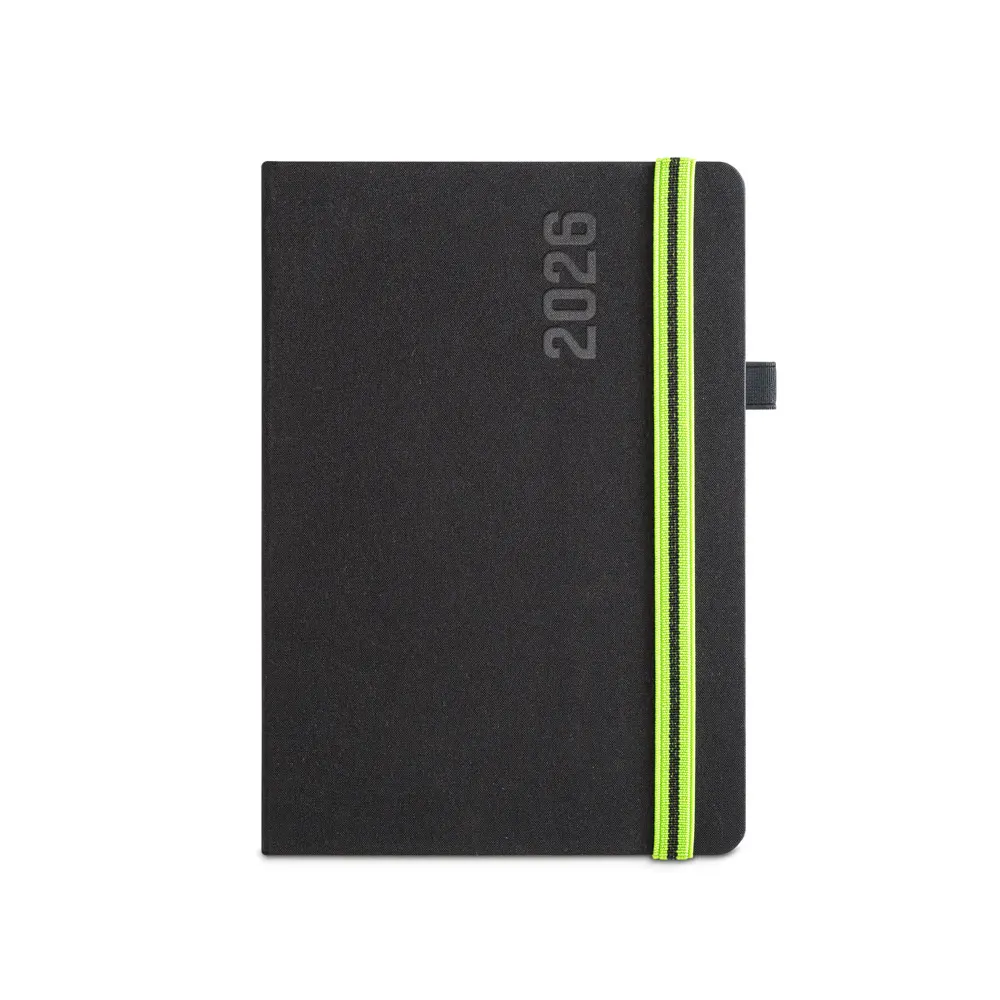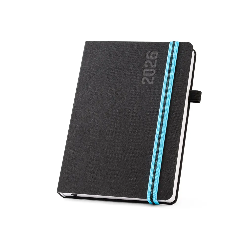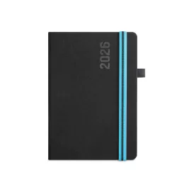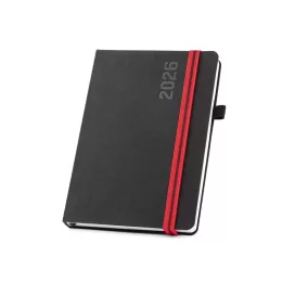Agenda A5 em tecido poliéster. Com suporte para esferográfica. Esferográfica não inclusa. 145 x 212 mm