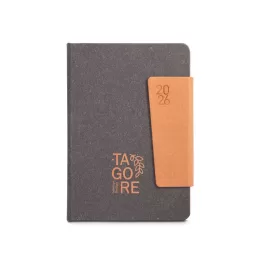 Agenda A5 em c. sintético com fecho magnético. Com suporte para esferográfica e marcador em fita. Fornecida com bolsa de non-woven. Esferográfica inclusa. 148 x 210 mm | Bolsa: 205 x 250 mm