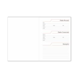 Capa: Couro Sintético 0,6mm – Miolo de Agenda Diária – 2×2 Cores – 344 páginas – Off-set 63g com Mapa 4×4 Cores – Índice Telefônico – Planejamento – Formato 145x200mm. NÃO ACOMPANHA A CANETA!