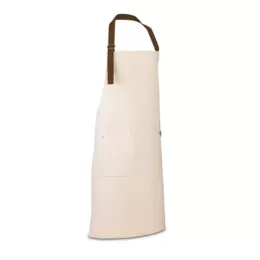 Avental em 100% algodão canvas (320 g/m²) com detalhes em metal. Com 3 bolsos multifuncionais e uma tira lateral (para suporte de um pano de cozinha). Tira do pescoço facilmente ajustável. 680 x 900 mm