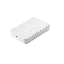 Bateria portátil em ABS 100% reciclado. Tem capacidade de 10.000 mAh e tempo de vida ≥ 300 ciclos. Esta bateria portátil torna-se muito prática para o dia a dia, uma vez que permite, através do seu magnetismo, prender-se atrás dos dispositivos móveis. Incluso grip magnético extra para ser colocado nos smartphones que não têm magnetismo. Possui entrada/saída USB-C e potência máxima de 15W para carregamento rápido sem fios. Compatível com smartphones com tecnologia de carregamento sem fios. Incluso cabo USB-C para carregamento rápido. Fornecido em caixa presente de papel kraft reciclado. 100 x 64 x 18 mm | Caixa: 90 x 22 x 103 mm