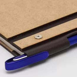 Descrição: Bloco de anotações Ecológico em MDF com porta caneta e detalhes em couro sintético. Contém aproximadamente 98 folhas recicláveis e sem pauta. OBS.: NÃO ACOMPANHA CANETA, IMAGEM MERAMENTE ILUSTRATIVA.