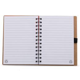 Descrição: Bloco de anotação ecológico com símbolo reciclado na capa, acompanha as folhas: vermelha, amarela, laranja, azul, verde e preto, possibilitando deixar a cor desejada como fundo do logo reciclado. Possui aproximadamente 70 folhas brancas pautadas com logo reciclado na lateral inferior das folhas, possui também elástico suporte para caneta(não acompanha caneta).