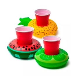 Disponível nas versões Limão, Melancia, Abacaxi e Donuts, a Boia Inflável Porta Copos Personalizada é um brinde com ótimo custo benefício e grande apelo promocional. Fácil de encher e de guardar, a Boia Inflável Porta Copos Personalizada se adapta na maioria dos copos (8 cm de diâmetro interno).