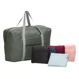 Descrição: Bolsa de viagem dobrável 24 litros em poliéster impermeável com dois compartimentos. Contém bolso para encaixe em malas de viagem.