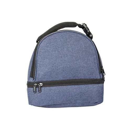 Bolsa térmica dupla feita em poliéster 300D resistente à água, com capacidade total de 12 litros.