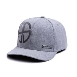Boné 06 gomos, aba curva, confeccionado em malha mescla. Frontal revestida com entretela inteligente, estampa frontal em silk, parte frontal com aplicação de plaquinha de metal, ajustador snapback, parte inferior da aba com bordado em 3d.