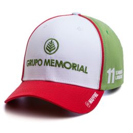 Boné modelo 06 gomos, aba curva confeccionado em sarja 100% algodão. Frontal revestida com entretela inteligente, soutache entre a frente e as laterais, bordado frontal em 3D e traseiro em silk, ajustador em velcro.