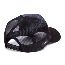 Boné americano, aba curva, confeccionado em helanca + tela. Frontal revestida com espuma, estampa frontal em silk 3d, ajustador snapback.