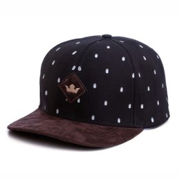 Boné snapback, confeccionado em sarja, abas em camurça, estampa full print + patch em camurça cortado a laser e fixado na peça com bordado, regulador plástico.