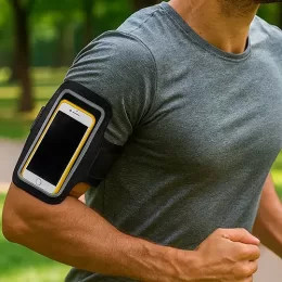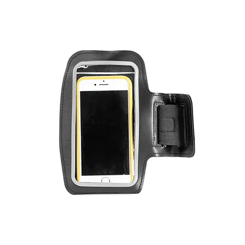Descrição: Braçadeira para celular em couro sintético e revestimento posterior em neoprene. Possui capacidade para aparelhos de até 6,5 polegadas, além de visor em plástico e alça de neoprene com fechamento em velcro para ajuste no braço.