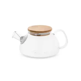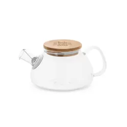 Bule de vidro borosilicato com tampa em bambu. Inclui infusor em aço inox. Capacidade até 750ml. Food grade. Fornecido em caixa presente de papel craft. 200 x 85mm