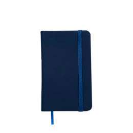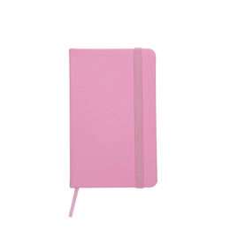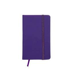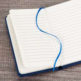 Caderneta tipo Moleskine com elástico para lacre e marcador de página em cetim.