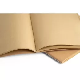 Caderno A4 com capa em cartão (250 g/m²) e cantos redondos. Contém 80 folhas não pautadas, costuradas, em papel reciclado proveniente de gestão florestal sustentável. 210 x 300 mm