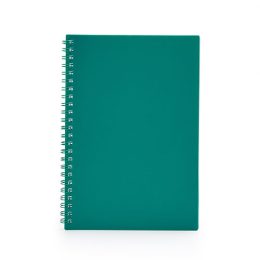Descrição: Caderno A5 plástico com wire-o metálico. Capa em PP, contém aproximadamente 80 folhas brancas com pauta.