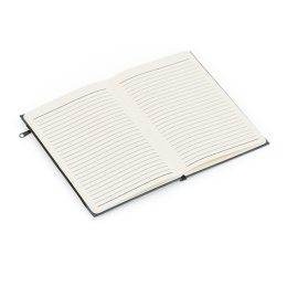 Caderno de anotações com porta objetos na capa, capa dura em material sintetico, miolo 80 folhas pautadas na cor bege.