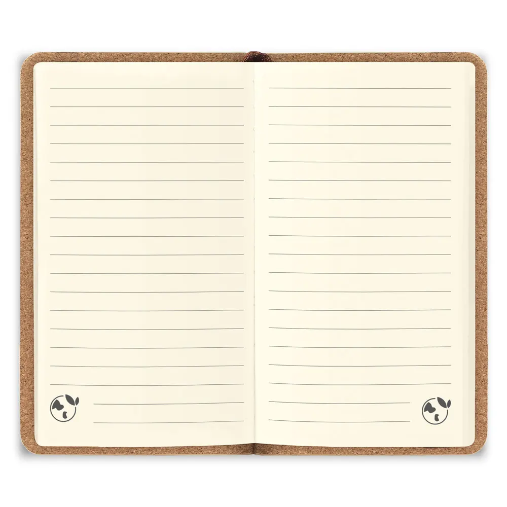 Caderno de bolso de capa dura em folha de bambu e cortiça com 160 páginas pautadas