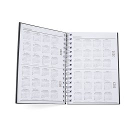 Possui aproximadamente 96 folhas brancas pautadas e páginas para: dados pessoais, calendário de 2020 à 2023 e planejamento.