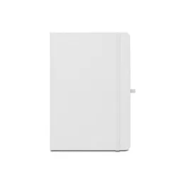 Descrição: Caderno de capa dura, fechamento em elástico e encadernação com discos plásticos reposicionáveis, que permitem retirar e adicionar folhas compatíveis. Apresenta página para dados pessoais, calendários de 2025 e 2026, folha com instruções de uso e bolso plástico. Possui cerca de 80 folhas brancas pautadas.