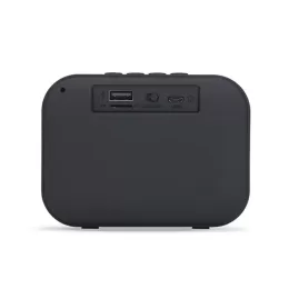 Descrição: Caixa de Som Multimídia. Produzida em material emborrachado, tela de proteção do auto-falante em tecido, parte inferior com borrachas anti-deslizantes. Possui os botões de Play/Pause; Aumentar e diminuir volume/avançar e retroceder faixas; Modo; Entrada USB; Entrada TF (cartão MicroSD); Botão On/Off e Entrada DC 5V. Acompanha cabo USB.