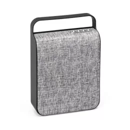 ABS e tecido em poliéster. Acabamento emborrachado. Com transmissão por bluetooth, ligação stereo 3,5 mm e leitor de cartões TF. Com 2 x 3W/4Ω. Autonomia até 3 h. Função para atender chamadas, controle de volume, conexão à playlist do dispositivo móvel e rádio FM. Incluso cabo USB para carregar. Fornecida em caixa de oferta. 155 x 230 x 55 mm | Caixa: 170 x 260 x 70 mm