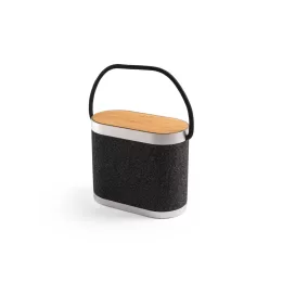 GUETTA. Caixa de som de 15W com carregador wireless super-rápido 15W e 2h de autonomia em bambu e PET 100% reciclado