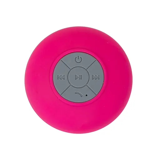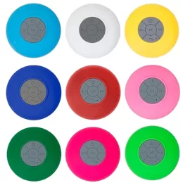 Caixa de Som Multimídia à prova D’Água emborrachada com ventosa(pode ser removida). Possui play/pause no centro e botão com desenho de telefone deve ser apertado para atender ligações. Compátivel com Iphone, Ipad, Ipod, aparelhos de celular e tablets. Acompanha cabo.
