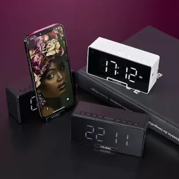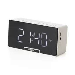 Descrição: Caixa de som multimídia com relógio despertador e suporte para celular. Produzida em plástico e com borrachas antiderrapantes na área inferior, a caixa de som tem a área frontal com display de LED, além de um compartimento com suporte para celular – uma espécie de “gaveta” aonde é exibido (MUSIC), basta puxá-la ter acesso ao compartimento. A caixa de som executa nos modos bluetooth, cartão TF-microSD e entrada auxiliar P2. Acompanha cabo USB e manual em inglês.