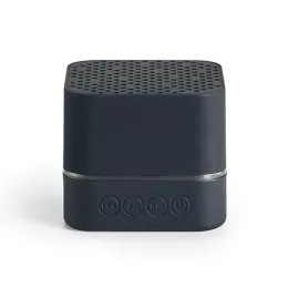 Caixa de som. ABS. Acabamento emborrachado. Luz LED no seu interior. Transmissão por bluetooth. Personalizável com logotipo iluminado. Autonomia: > 2h. Bateria: 300mAh. Inclui cabo USB – micro USB para carregamento. Fornecida em caixa. 59 x 59 x 51 mm