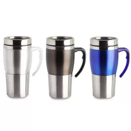 Descrição: Uma caneca para estar com você o dia todo! Seja para um suco geladinho, uma vitamina nutritiva ou até aquele drink especial. Com 450ml de capacidade, tem um design moderno e uma alça ergonômica super confortável, combinando inox com detalhe em acrílico. A tampa rosqueável possui um compartimento deslizante que facilita na hora de beber. E para completar, a base antiderrapante garante mais estabilidade ao apoiar na mesa. Essa caneca é tudo o que você precisa para aproveitar cada momento com sua bebida predileta!