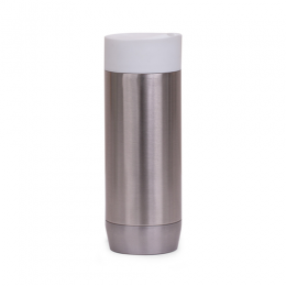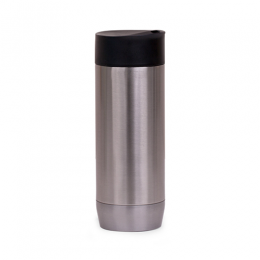 Caneca em aço inox parede dupla, conserva temperatura e tampa com vedação. Capacidade 450ml.