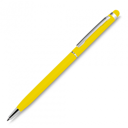 Caneta esferográfica de metal escrita em azul, emborrachada, touch