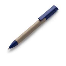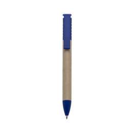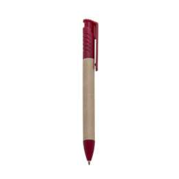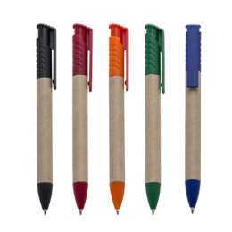Caneta ecológica de papelão com clip(relevo no suporte e clip) e ponteira plástica. Aciona por clique.