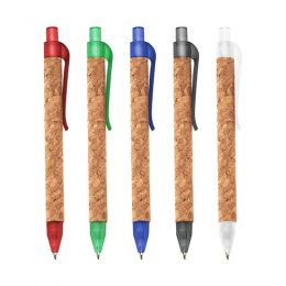 Descrição: Caneta de cortiça com detalhes plásticos coloridos, aciona por clique. OBS.: PEDIDO APENAS MÚLTIPLO DE 58 PEÇAS!