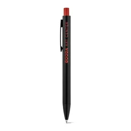 Esferográfica em alumínio com acabamento mate e botão com acabamento brilhante. Corpo com duplo acabamento. ø10 x 140 mm