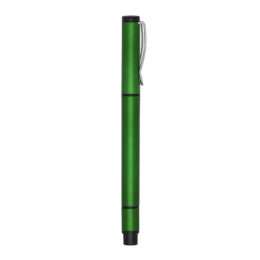 Caneta plástica esferográfica e marca texto, inteira colorida com detalhes preto. Clip de metal, possui tampa de ambos lados. Obs.: Indiferente de cor, todos marca textos são amarelos.