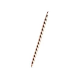 Descrição: Caneta metálica com acionamento por rotação e carga esferográfica azul 1mm.