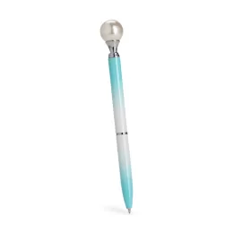 Descrição: Caneta em metal com detalhe ornamental no formato de pérola. Possui acionamento em clique, destravamento ao pressionar a parte inferior do clipe e carga esferográfica azul de 1.0mm.