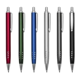 Descrição: Caneta metálica com carga esferográfica azul e acionamento por clique.