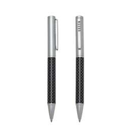 Caneta metal executiva prata com detalhes. Clip metal com cinco furos e aciona por giro.