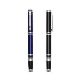 Descrição: Caneta metal roller com tampa inteira colorida com detalhes prata. Clip metal, possui anel preto em relevo na parte superior e no centro. Seis anéis prata na parte inferior com um detalhe preto. OBS.: PEDIDO APENAS MÚLTIPLO DE 15 PEÇAS!