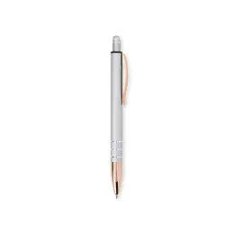 Descrição: Caneta metálica com acionador touch, clipe metálico e ponteira plástica. Carga esferográfica azul 1.0mm e acionamento por clique.