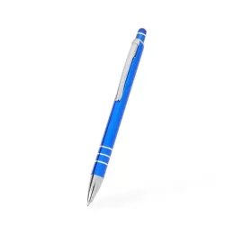 Descrição: Caneta metálica com acionador touch, clipe metálico e ponteira plástica. Carga esferográfica azul 1.0mm e acionamento por clique.