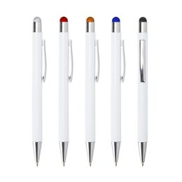 Descrição: Caneta metálica touchscreen com carga esferográfica azul 1.0mm e acionamento por clique.