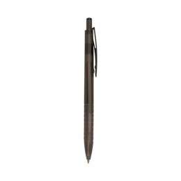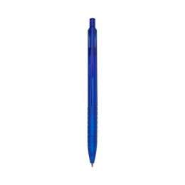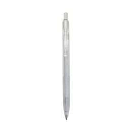 Descrição: Caneta plástica translúcida inteira colorida. Clip plástico com detalhe vazado nas laterais, acionador e parte inferior preta com oito anéis em relevo. Aciona por clique.