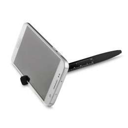 Descrição: Caneta plástica multifunções colorida com detalhes em preto fosco. Clip com limpador de tela na parte superior, pode também ser utilizado como suporte de apoio para celular; removendo esta tampa superior há um suporte com uma mini chave de duas pontas(Fenda e Philips); corpo da caneta triangular com régua de 7 cm e borracha touch inferior. Aciona por giro.