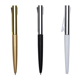 Descrição: Caneta semimetal com parte superior brilhante e parte inferior fosca. Clip preto metálico, para acioná-lo basta pressionar sua parte inferior e para voltar ao normal pressionar sua parte superior.