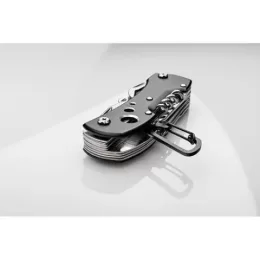 Canivete multifunções em aço inox com 12 peças e mosquetão. Fornecido em caixa presente. 89 x 16 x 32 mm | Caixa: 104 x 39 x 20 mm