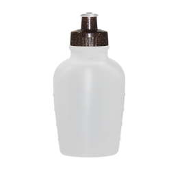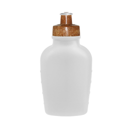Cantil com corpo de Plástico Premium (PE) resistente e flexível, tampa rosqueável feita com 50% de Fibra Natural de Coco ou Madeira e 50% Plástico Premium (PP) com bico em PVC cristal, todos atóxicos. Tampas ecossustentáveis com acabamento e vedação impecável. Capacidade de 500 ml.