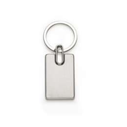 Chaveiro de Metal retangular com chapa para personalização frontal e verso liso, suporte para argola é vazado.